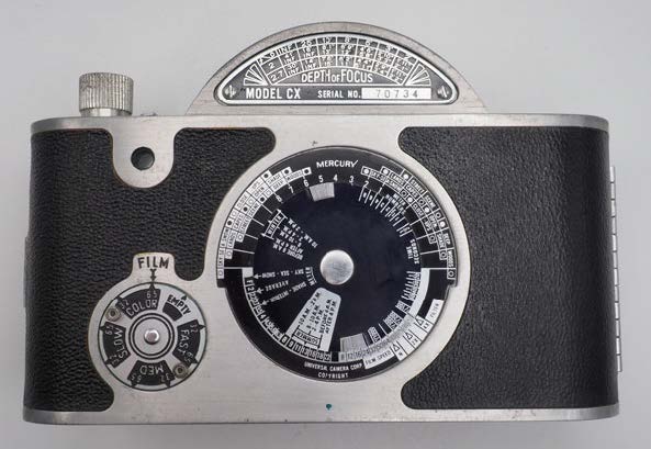 Univex (the Universal Camera Corporation), founded in 1932, initially specialized in inexpensive snapshot cameras, starting at 69 cents, with film costing as little as 10 cents for six exposures. Film was a key to Univex’s sales strategy. Their cameras used unique, patent-protected film rolls that no else made. The company began moving upscale in 1938, producing more sophisticated and expensive cameras. The Mercury I, from 1938, their most expensive camera to that point used 35mm film, but in unique Univex cartridges.